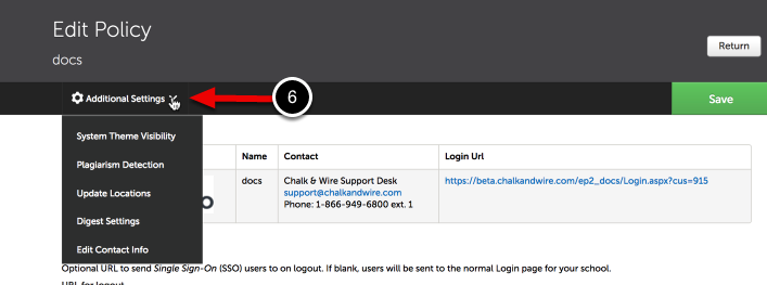 6. Using the Additional Settings menu at the top left corner of the screen you can view, add, or modify: