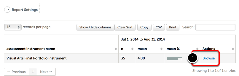 1. Click to select whether you want to look at the submissions by date Assessed or Submitted.
