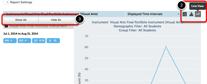 3. If you have generated a report with multiple items, you can select to hide or show specific items by using the checkboxes and Show All and Hide All buttons.