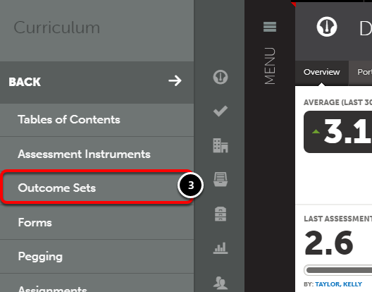 4. Locate the Outcome Set that you would like to edit, and click anywhere on its row to reveal its options. Select Edit.