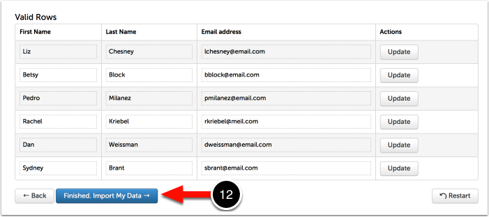 A sample of your import data will appear which should be used to ensure that your columns are defined correctly. Even if you do not see all of your rows listed, they will be included in the import.