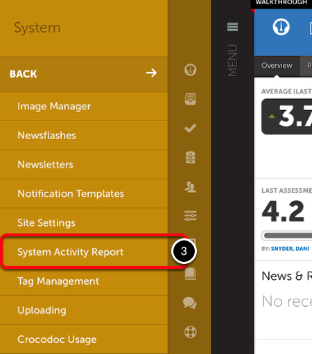 6. A list of different activity types (submissions, assessments, logins, etc.) will appear with a corresponding number.