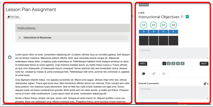 The assessment interface will appear on your screen, displaying student work on the left and the assessment instrument on the right.