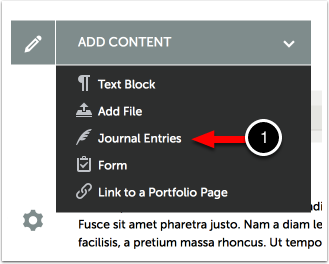 The Add Journal Entries option allows you to add existing journal entries to your portfolio from within your Anthology Portfolio account.