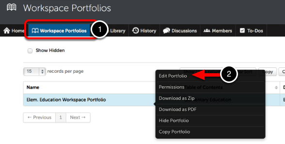 1. Navigate to the Workspace Portfolios tab in your workspace.