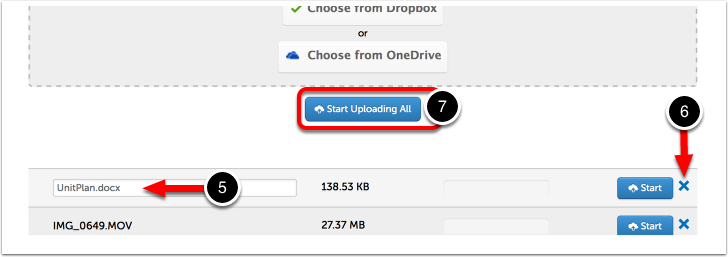 4. Optionally Remove the File from the list of file(s) that you would like to upload.
