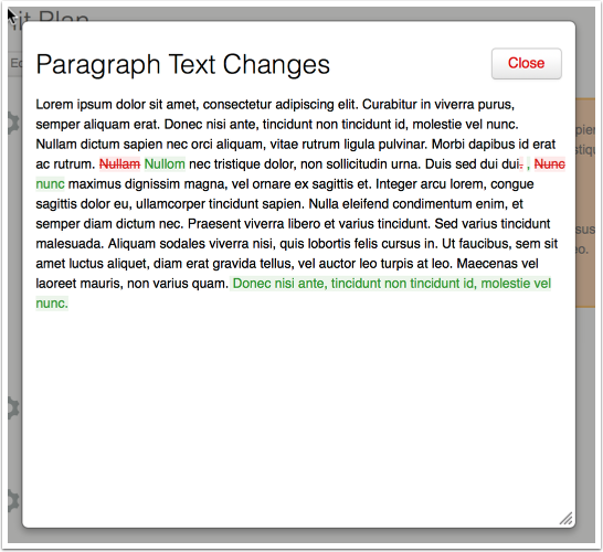 A pop-up window will appear to indicate where text was removed and/or added.