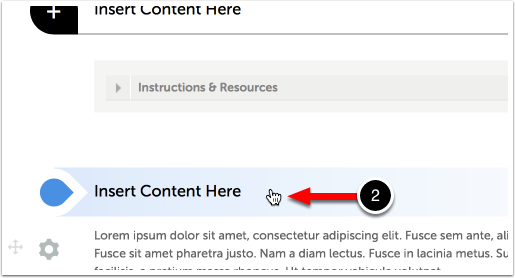 2. Click on the Insert Content Here bar that corresponds with the space that you would like to add your content to reveal the Text Editor.