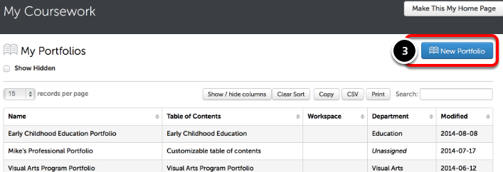 Please note that it may not be necessary to create a new portfolio each time you would like to submit work - if you have a pre-existing portfolio that uses the correct table of contents, you may use it again.
