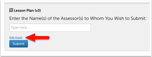 If you are submitting to an external assessor (sometimes referred to as a guest) and their name does not appear, use the "Add Guest" link above the Submit button.
